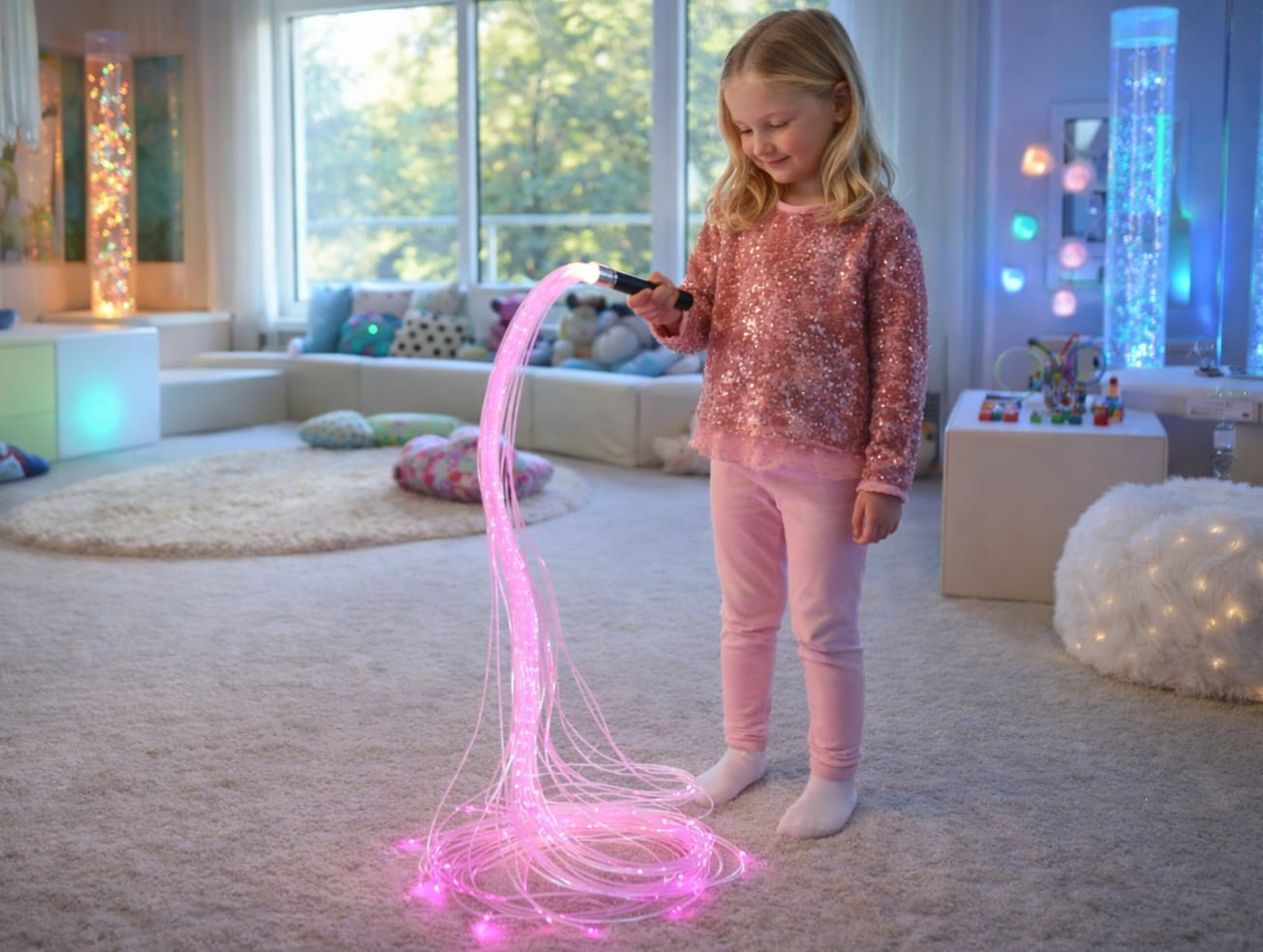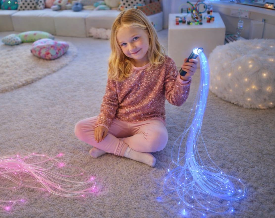 Sledujte, jak optické ocásky září a nechávají diváky v úžasu. Perfektní doplněk do každé senzorické nebo snoezelen místnosti, školky , školy nebo dětského pokoje.