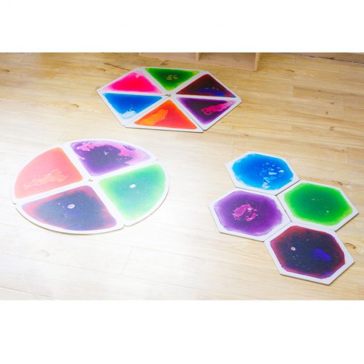- Jasné a zářivé barvy , příjemný povrch a zcela nový šestiúhelníkový tvar. - - Podporuje vizuální stimulaci, pohyb a hmat. Každá dlaždice je naplněna tekutým gelem, takže každý krok nebo pohyb způsobí, že se tekutý gel posune v řadě vzorů.